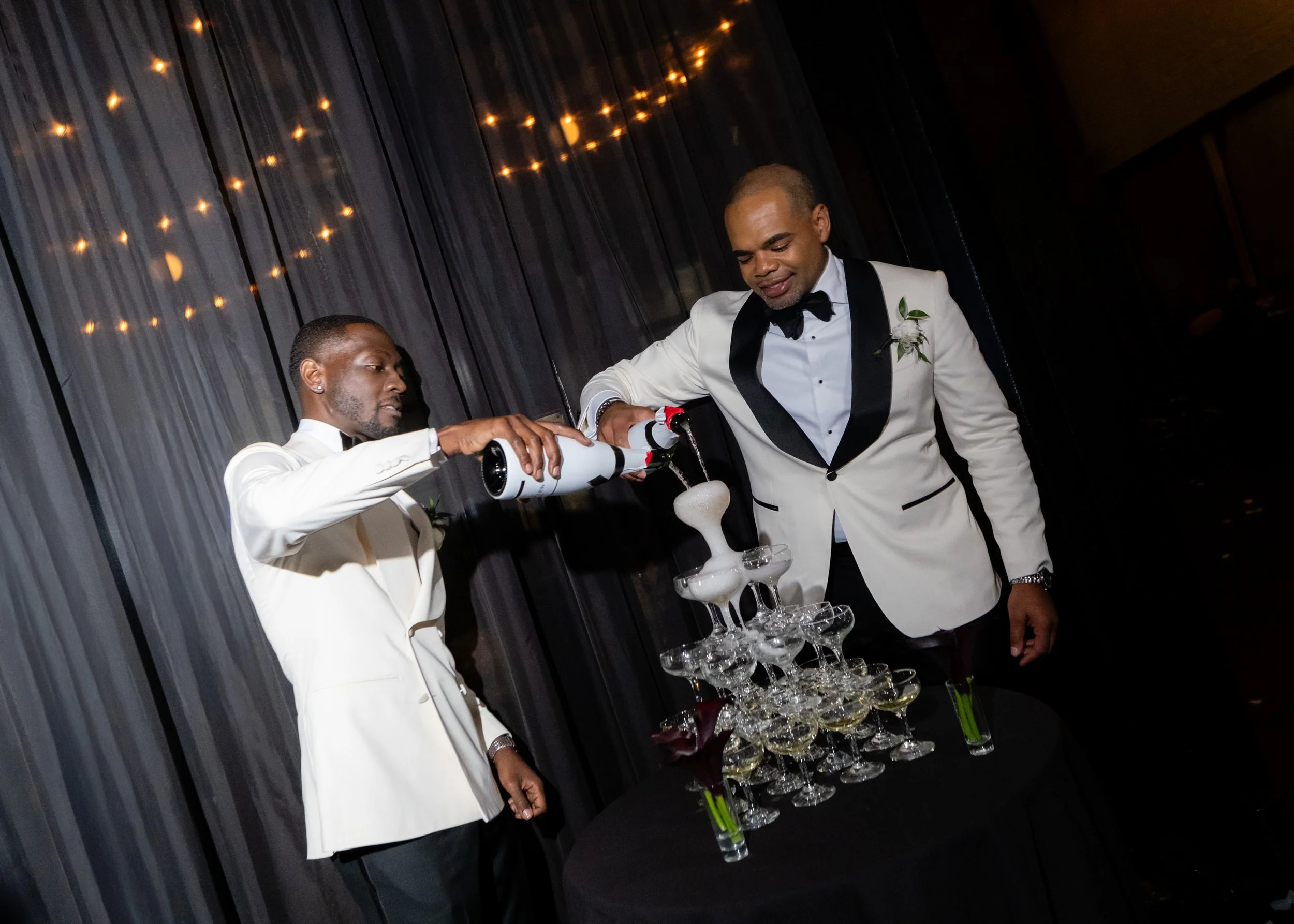Moments like this champagne tower didn’t happen by accident. Behind the scenes, every detail of the evening had been actually coordinated so the couple could simply be present and enjoy the celebration they had envisioned.